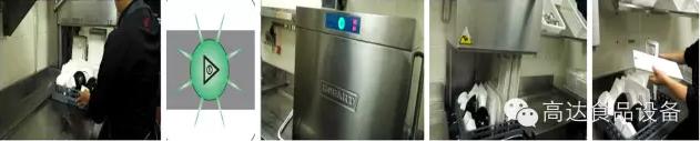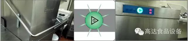 3、将碗筐推入机器,关门开始清洗,灯闪烁,正在清洗;灯长亮,清洗完毕