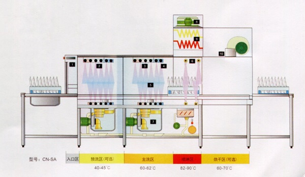 | 机器型号 | 最大洗涤量(筐/每小时) | 最大洗涤量(碟/每小时) | 水缸加热方式 | 水缸加热功率 | 喷淋加热方式 | 喷淋方式 | 每筐耗水量(kl) | 进水温度10度 | 进水温度50度 | 最大配电量(kw) | 需要配置的选购件 |
